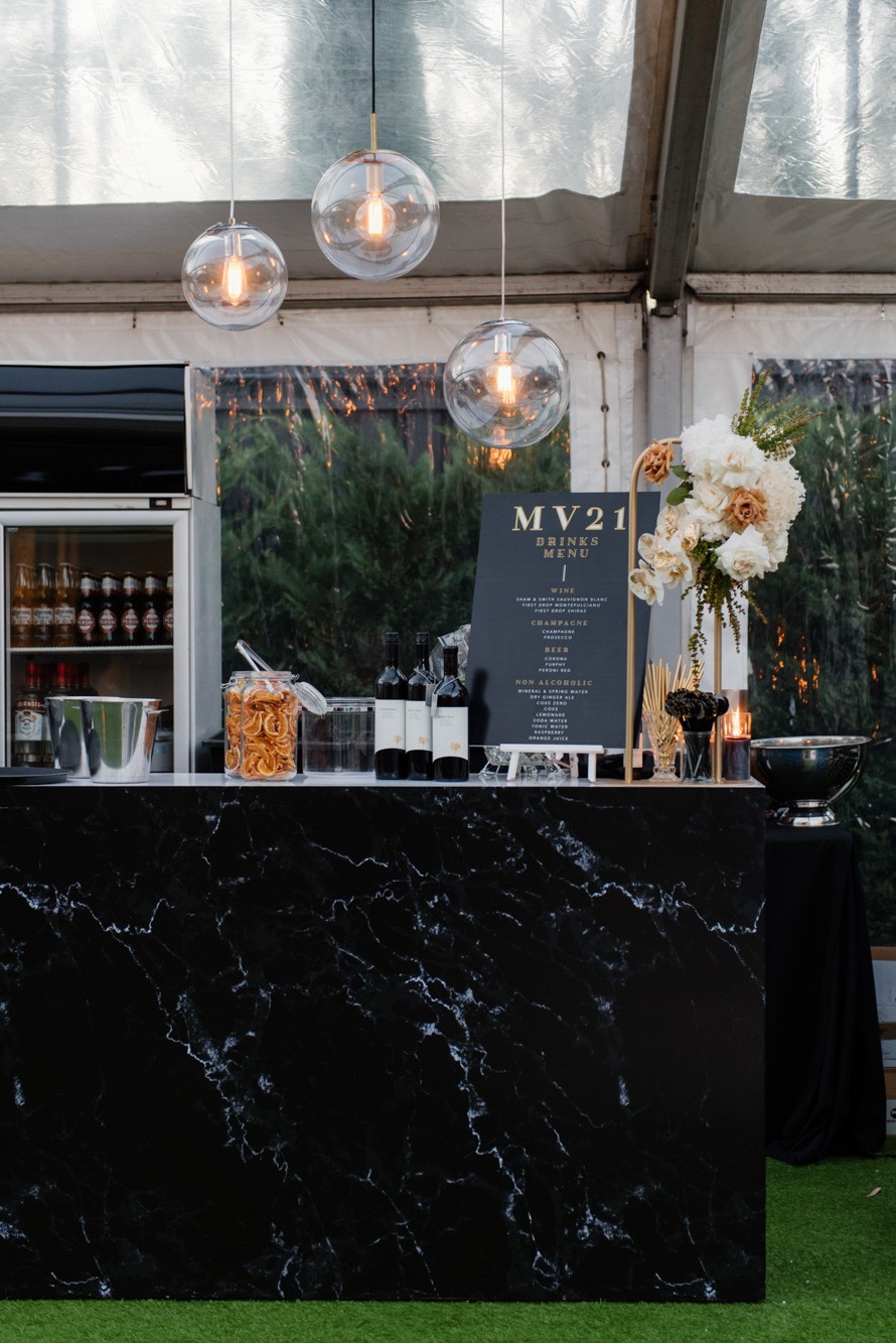 Add a touch of luxury to your event with our Black Marble Bar. Featuring a sleek black marble-effect front and practical rear shelving for glassware, bottles, or décor, this bar is both stylish and functional. Perfect for weddings, corporate events, private parties, and more—it’s a standout piece that brings elegance and impact to any setting.