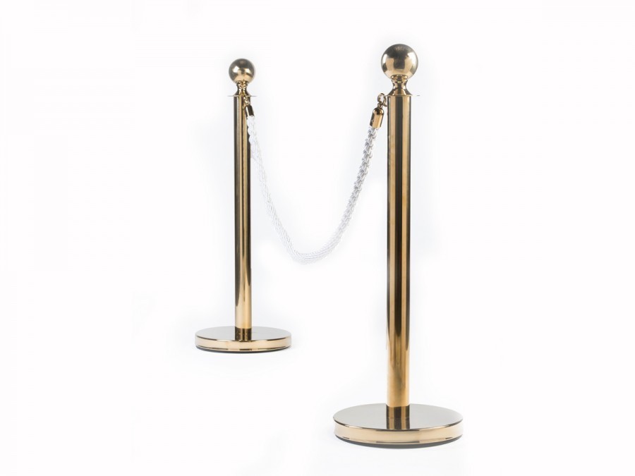 Make your guests feel like movie stars with our classic, ball topped bollards. Available in gold, black and silver, our bollards are light weight, stand alone structures that can be arranged and rearranged to suit the needs of your event. Perfect for making an unforgettable entrance, or just providing your guests with a sense of exclusivity, our bollards bring a ‘wow’ factor to any event. Each bollard works perfectly with a 1.8m braided rope that easily hooks onto the top of the post and results in a dramatic draped barrier that will have your guests feeling like VIP’s all night long.