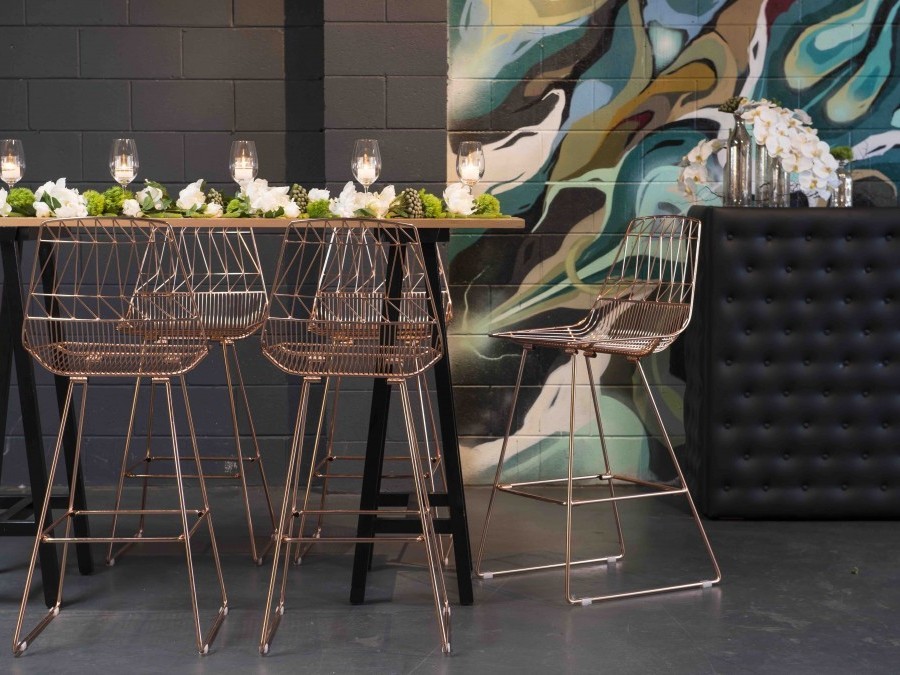Designed with both function and style in mind, our Cleo high stool is contemporary seating at its best. Standing at a height of 0.75m, the metallic copper finish results in a stunning feature that complements any décor. The perfect addition to any cocktail event, our high stools come with an optional black or white cushion for added comfort. Hire alone, or in conjunction with one of our high bar or cocktail tables for a dining experience guests will love!