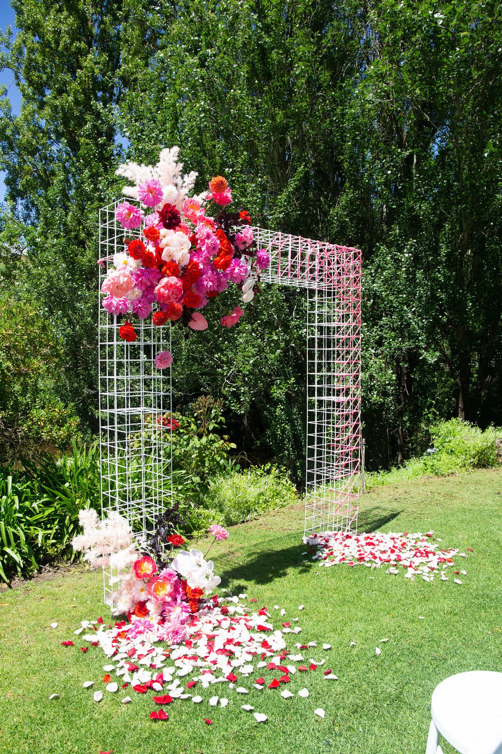 Modern and architectural, our White Cubed Wire Arbour is the perfect statement piece for ceremonies, entrances or styled installations. Its clean lines and open grid design offer a contemporary base for florals, draping or signage. Freestanding and easy to customise for any event.