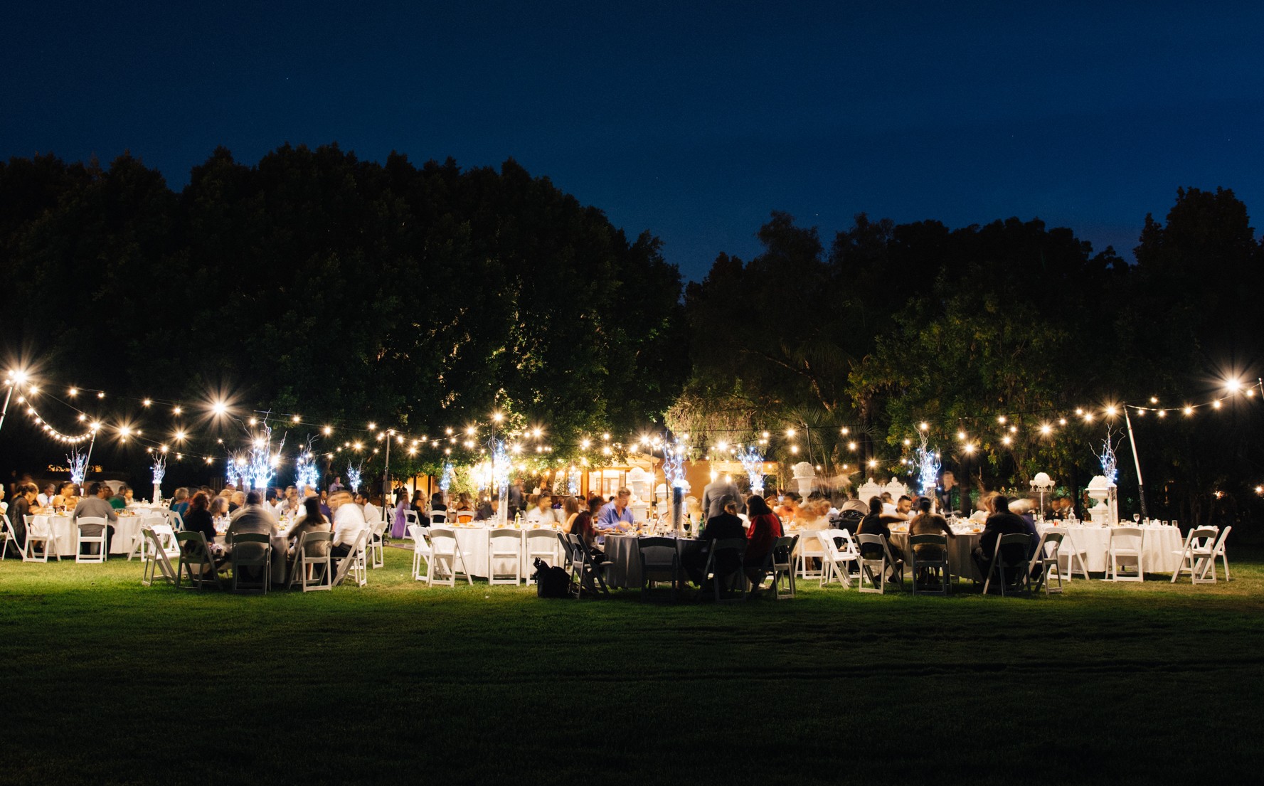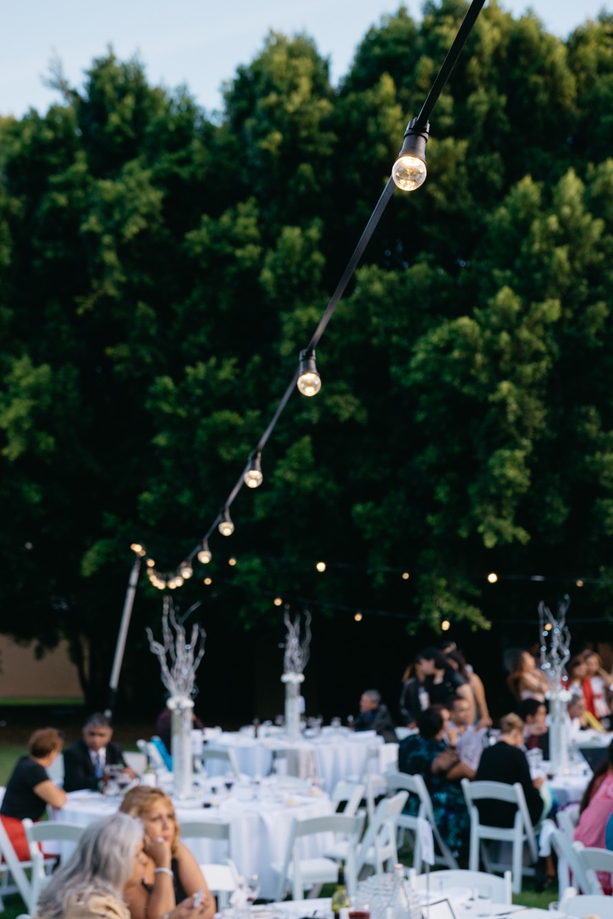Create an elegant backdrop for any event with our Festoon Lighting. Functional and stylish, the colourless globes provide a warm, evenly distributed light that makes them ideal for weddings, engagements and large scale events. Perfect for use both indoors and out, our Festoon lighting can be hung from trees, ceilings, buildings and other existing features to create a vibrant atmosphere for any event running into the night. An easy way to add a touch of magic to any venue, our Festoon lighting can be hired alone or in combination with our fairy lights for an eye-catching feature that guests will love.