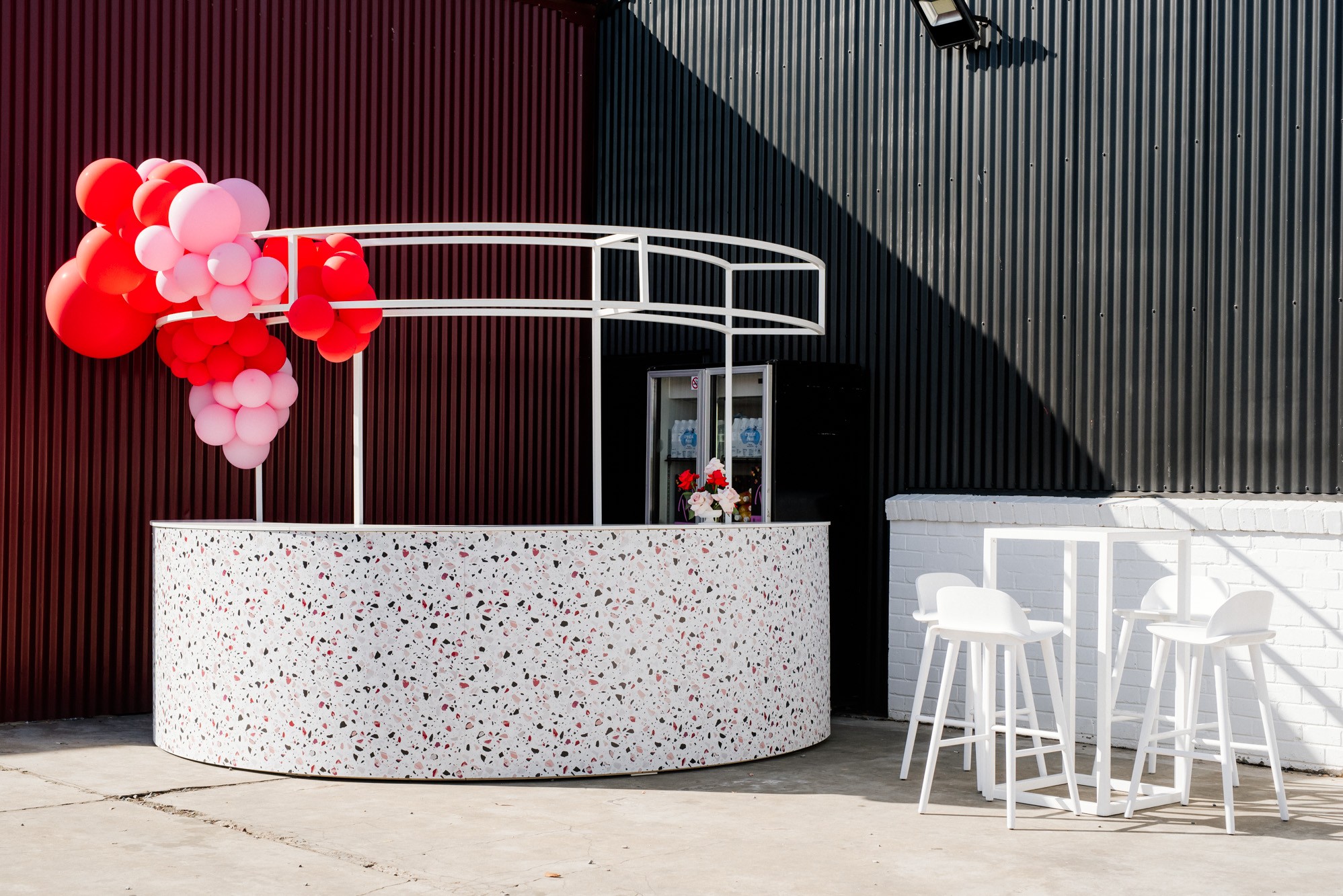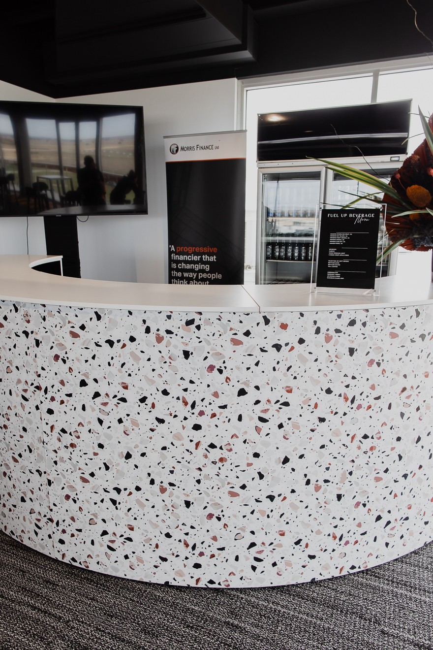 Stylish, modern, and designed to impress—our Terrazzo Circular Bar is the ultimate statement piece for any event. Featuring a chic terrazzo print front and functional interior shelving for seamless service, this half-circle bar is both eye-catching and efficient. Add our matching canopy to create height and structure, perfect for hanging florals, lighting, or signage. Ideal for weddings, large-scale celebrations, and events that demand a standout focal point.