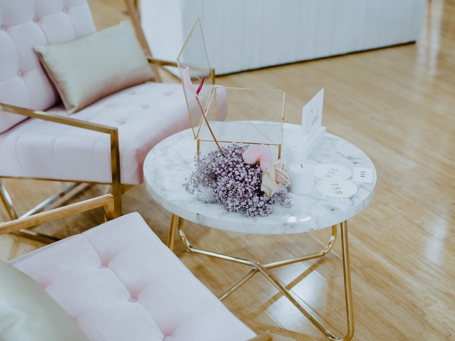 Smooth and streamlined in design, our Harper Marble Coffee Table is an easy way of providing guests with extra table space, without compromising on style. With the option of simple gold or white legs, the minimalistic design is further enhanced by a beautiful white marble top which boasts subtle black veins. Standing at a compact 0.46 metres in height, with a spacious 0.70 metre top, our Harper Marble Coffee Table is the perfect companion for our Lola Oak and Cleo collections. Hire alone for a stand out piece, or pair back with our Harper Marble Side Table for an eye catching interplay of large and small.