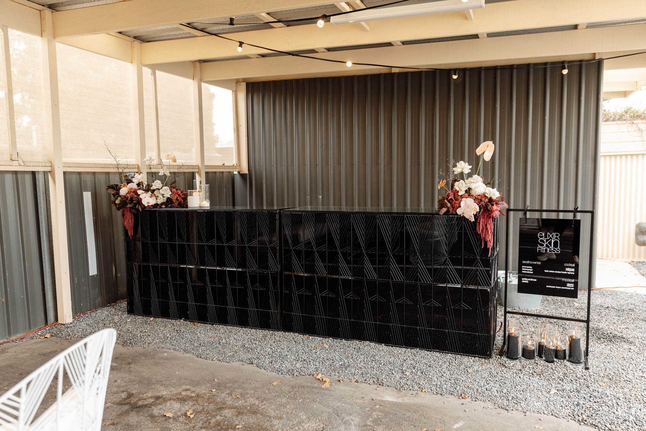 Modern with a bold edge, our Jagger Straight Bar features a striking geometric wire design that adds instant impact to any event space. Sleek and stylish, it’s perfect for serving drinks or creating a standout focal point at weddings, corporate functions, and upscale celebrations. Spanning a generous 1.8m, each bar has inbuilt shelving for ample storage and can be easily joined to increase service space for large events. With the option of acrylic inserts in black, white or grey, you can tailor the bar to your needs – select a complementary colour for understated elegance, or contrasting insert to make the steel frame pop!