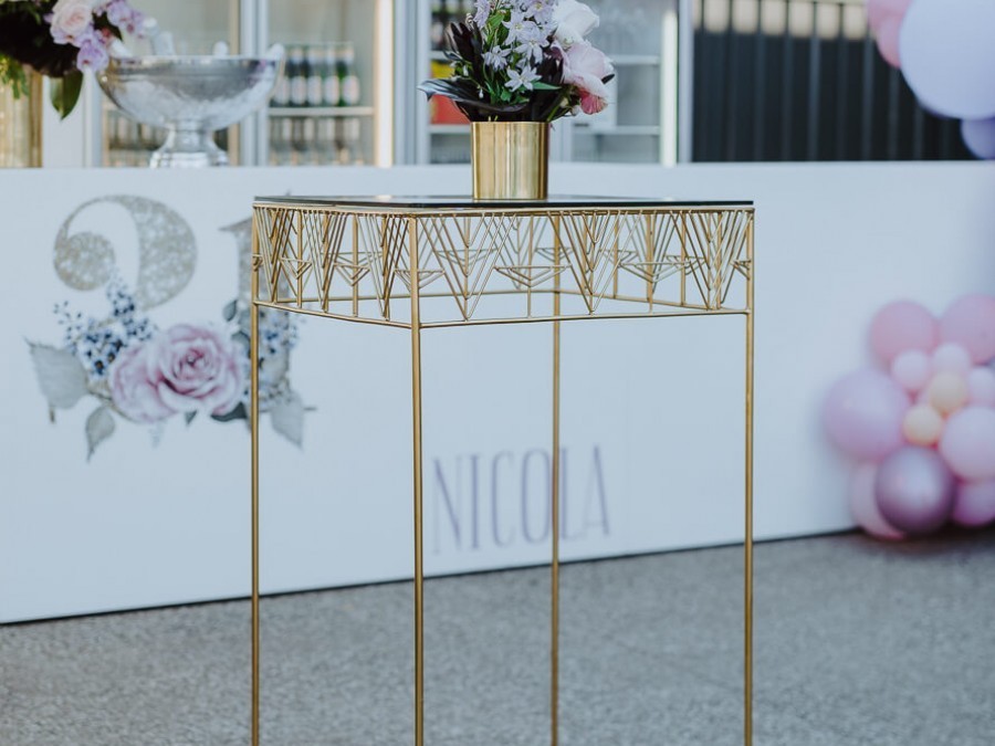 Designed in house, our Jagger High Bar is reminiscent of the uninhibited decadence the 1920’s was renowned for. Boasting an eye catching geometric design, our Jagger High Bar is available in sleek gold, copper, black or white. Perfect for cocktail events of all sizes, our Jagger High Bar stands at a comfortable 1.1m in height and comes with the optional addition of a glass top. Exclusive to Modern Party, our Jagger High Bars look stunning when scattered around a venue for guests to utilise as they need, or hire in conjunction with our Cleo or Harper High Stools for an intimate dining experience guests will love.