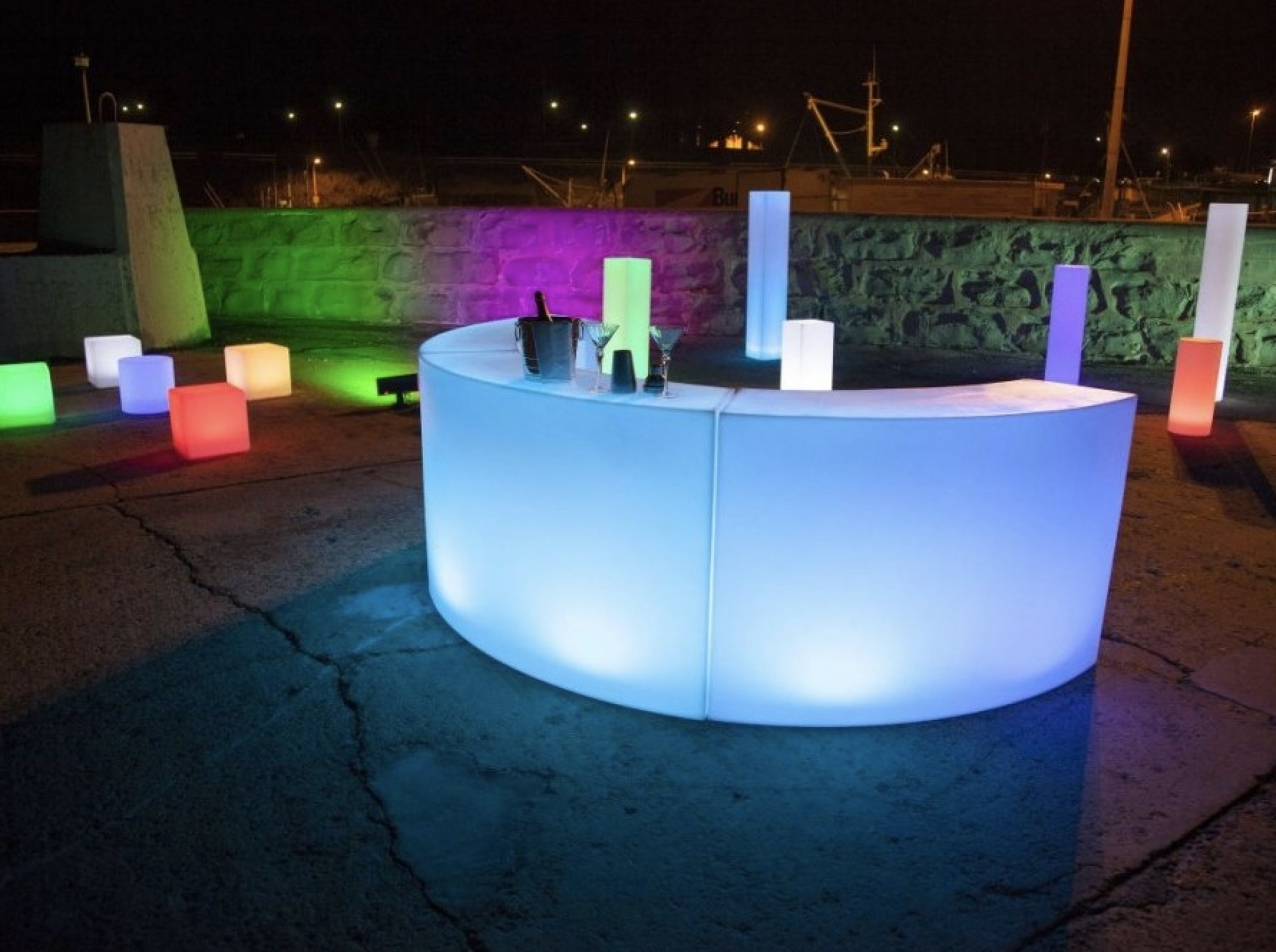 Light up any event with our LED bar. With a generous 1.5m top, our LED bar provides ample service space for small events, with the beautiful, curved design easily joining together for any event where more space is required. Boasting inbuilt shelving for storage, and standing at a comfortable 1.1m in height, our LED bars are easily operated via remote control. With multiple modes to choose from, including fade and flash, you can easily change the look of our LED bar to reflect the evolving nature of your event.