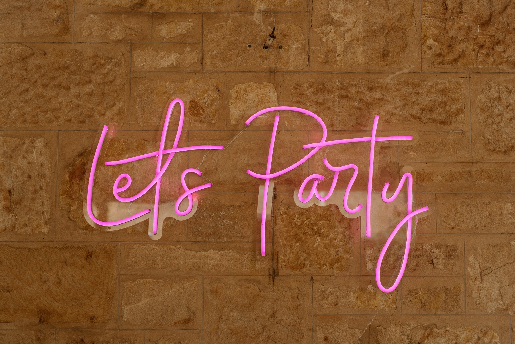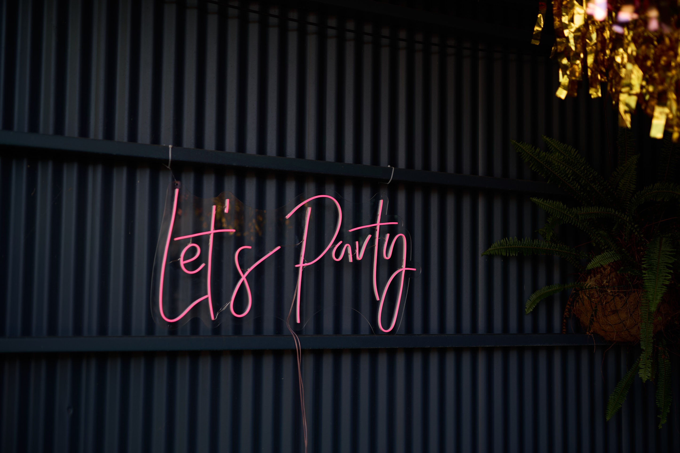 Simple and iconic, Let’s Party sets the tone instantly. A must-have for birthdays, weddings, and celebrations—custom colours available to suit your theme.