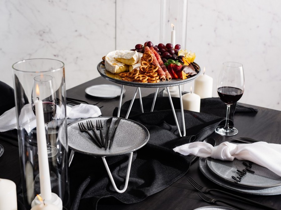 Bold and timeless, our Oxidised Oak Black Dining Table features a rich matte finish and a sturdy, generous build—perfect for seating larger groups in style. Its clean lines and solid presence make it ideal for modern receptions, long lunches, or statement dining setups.