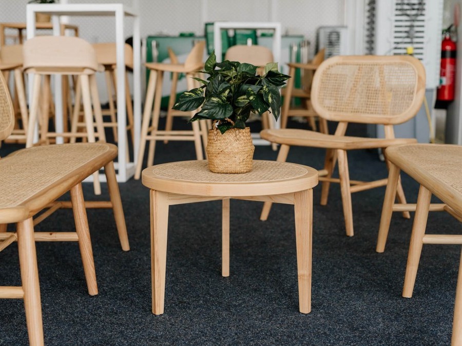 Warm and textural, our Willow Rattan Coffee Table features a beautifully woven rattan design with a sturdy oak frame. Its round shape adds a soft, organic touch — perfect for lounge areas, garden parties, or boho-inspired events. A stylish staple for relaxed, elegant settings.