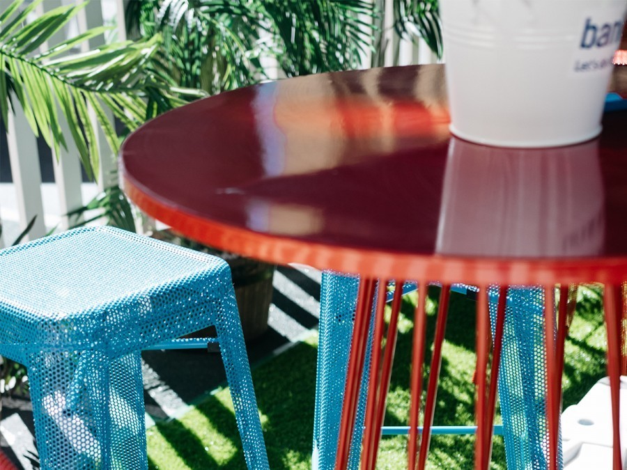 Our hire bar tables are a classic style with a twist. Made from powder-coated steel, the sturdy designs are suitable for use both indoors and out, while the eye catching base adds an edge you won’t find anywhere else. Available in six colours that you can mix and match with ease and standing at a comfortable 1m in height, our cocktail tables are the perfect solution for any event that requires something other than traditional seating.